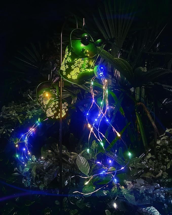 • Upgraded Colorful Solar Watering Can: Elevate your outdoor ambiance with our multicolored Frog-shaped hanging solar lantern featuring 8 light modes and 4 color LED strings, casting a starry glow as if pouring out a constellation. The warm yellow light filters through the exquisite cut-out design, creating a cozy and artistic atmosphere for memorable nights with family and friends