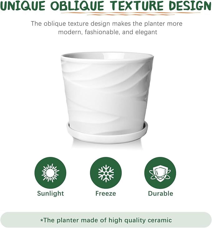 • 【With Drain Holes and Saucers 】 The drain hole in the middle of the bottom of the planter can drain out excess water, allowing the plant to grow healthier. There are saucers to catch excess mud and water so as not to stain the floor.