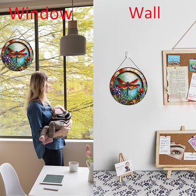 • 【Premium Material】Window hanging is made with high-end stained glass,unique handmade decoration,the dragonfly pattern is exquisite and beautiful,it is a unique presence in the ornament.