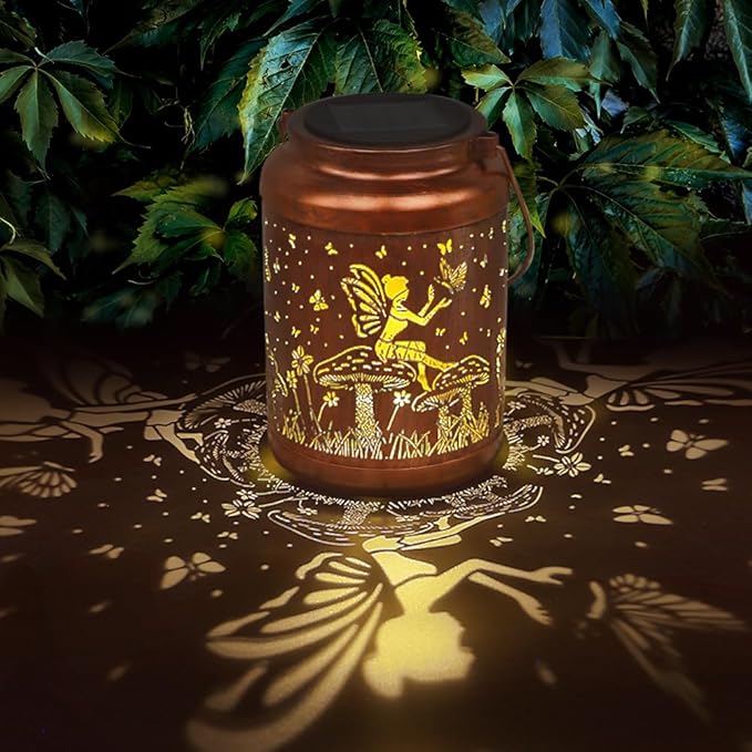 • Perfect Garden Decorations- Fairy solar lantern can project unique and beautiful patterns in a dim environment, creating a gorgeous and warm atmosphere to bring life and fun to your garden and attract your family or friends. The unique hollow out design and beautiful antique bronze color give it an artistic touch, perfect for decorating gardens, backyards, corners, Outside, sidewalks and many other scenes.