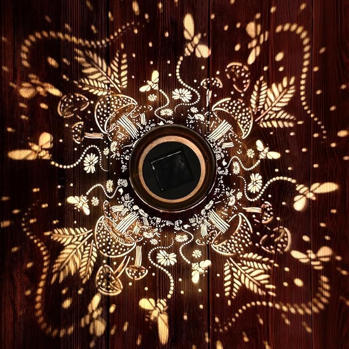 • Perfect Garden Decorations- Fairy solar lantern can project unique and beautiful patterns in a dim environment, creating a gorgeous and warm atmosphere to bring life and fun to your garden and attract your family or friends. The unique hollow out design and beautiful antique bronze color give it an artistic touch, perfect for decorating gardens, backyards, corners, Outside, sidewalks and many other scenes.