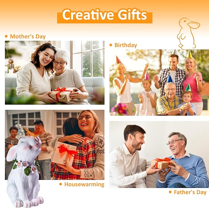 • 【Creative Gift】The rabbit statue lamp is a great gift that speaks volumes to show your appreciation and love whether it's for Mother's Day, Birthday, Easter or Christmas. This heartfelt gift is sure to surprise your mom or friends. Depending on your needs, bunny statues can be placed on terraces, gardens, courtyards, and balconies