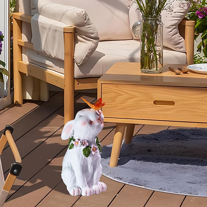 • 【Charming Garden Decor】The adorable garden bunny statue is the perfect addition to any garden. With intricate fur details and an attractive butterfly resting on the rabbit's nose, especially in the garden and courtyard, you can better feel its vitality. This yard bunny decor doubles as a high-quality garden lamp, perfect gift for moms and women