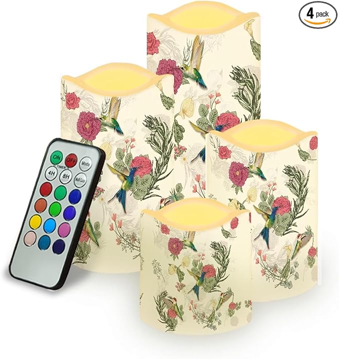Ystardream Hummingbird Electric Candles Battery Operated Vintage Elegant Flameless Flickering Candles with Remote Control Timer for Christmas,Thanksgiving,Party Wedding Decoration,4 Pack