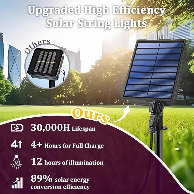 • Safety & Weatherproof: Made of high quality materials with advanced technology, these LED fairy twinkle lights and solar panels feature IP65 waterproofing, whether it's raining or snowing, you don't have to worry about weather damage during use, suitable for various climatic conditions. These features make the string light long life, low maintenance cost, safe to use, you can rest assured to buy.