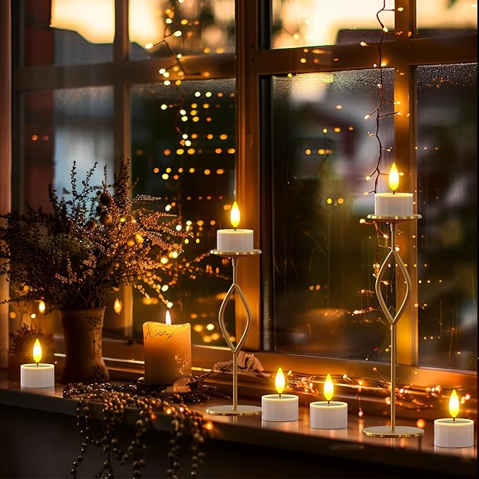 • Solar Powered Candles: Say goodbye to batteries and hello to solar power! These solar tea lights charge in just 6-8 hours of sunlight and glow for 8-10 hours, giving you a soft, warm light that’s great for any space
