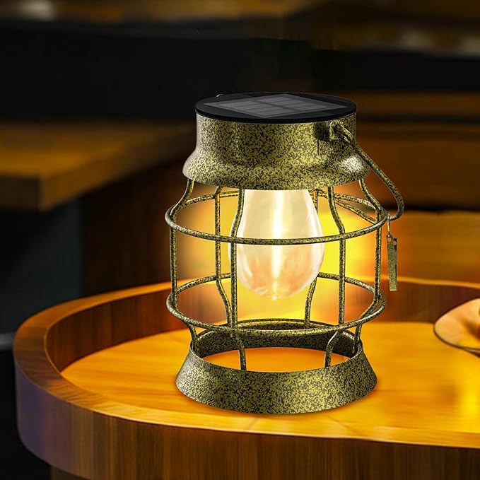 • Vintage Metal Solar Lights : Traditional metal vintage solar lights outdoor waterproof lights exude timeless elegance and charm, distilling the essence of classic design with a hint of retro allure. Our outdoor hanging solar lights are complemented by bronze openwork iron rim strips that give off an alluring glow. Perfect for decorating your garden or patio, it exudes a delightful vintage vibe.