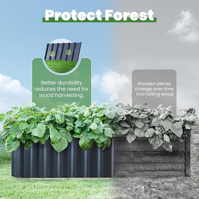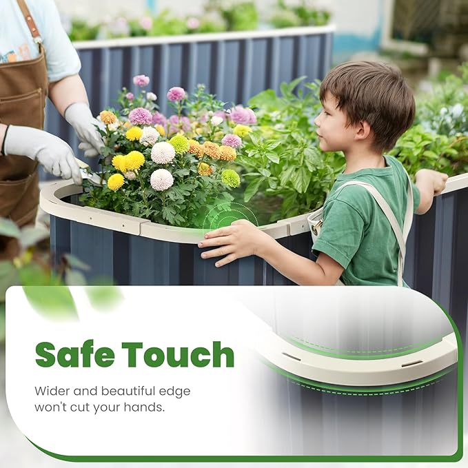• 【No Sharp Corners & Contrasting Colors】Experience the perfect blend of safety and style with our raised garden bed, featuring smooth, rounded edges that eliminate sharp corners. The widened top not only enhances safety but also elevates the visual appeal with its contrasting color design. Transform your garden into a vibrant and secure haven.