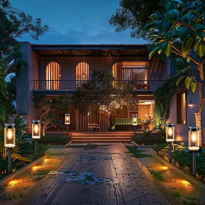 • Suitable for All Weather: Solar garden lights is made of ABS shell, transparent lampshade and stainless steel pole, sturdy and durable. IP65 waterproof rating, solar path lights can withstand all kinds of bad weather. No need to worry about rain, sunshine, fog, snow