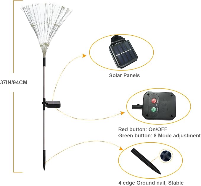 • 【Easy to install and versatile】No wires or other tools are needed to install this garden light,with the new four-pronged ground spike,the installation is more stable and sturdy. Simply install the solar decorative lights in your garden and turn on the switch, which emits beautiful and colorful light spots lifelike fireworks creating a romantic holiday atmosphere. Suitable for outdoor decorations in yards, flower beds, lawns and sidewalks as well as Christmas, weddings, parties and any other occasions.