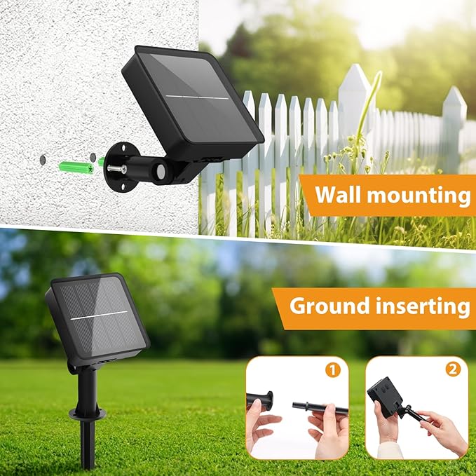 • 2 Mounting Options: Supplied with ground stake, screws and explosion proof nails. Follow the instructions to mount the solar panel on the wall or on the floor for a very quick installation