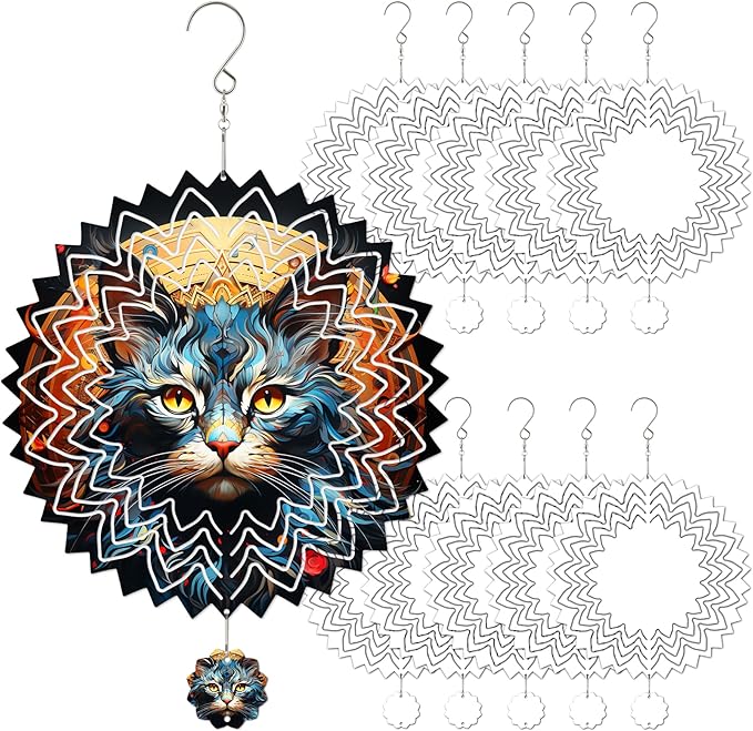 • BRIGHT AND VIVID COLOR: The double-sided of our wind spinner sublimation blanks ornaments is treated with high-quality sublimation coating, ensuring the vivid and crisp sublimation results for every project. Could be a nice Halloween decorations. Allowing you to incorporate your favorite designs or photos, unleashing your imagination to create a stunning personalized product. This windspinner sublimation blanks is suitable for heat transfer.