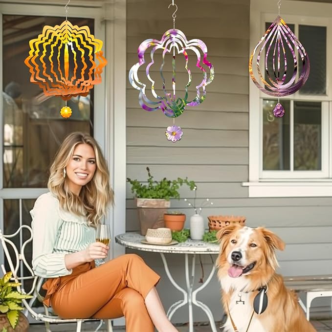 • WIDE APPLICATION — The spiral wind spinners for outside is suitable for gardens, windows, porches, front doors, backyard, trees, walls, patios, lawn and other indoor or outdoor spaces you prefer. It rotates in the wind, creating a magical 3D visual effect. This versatility makes it an ideal gift choice for weddings, Father's Day, Mother's Day, Valentine's Day, Christmas,Holiday, Halloween, Thanksgiving, anniversaries, and housewarming. A ncie DIY gift for our family, friend, mother, father.