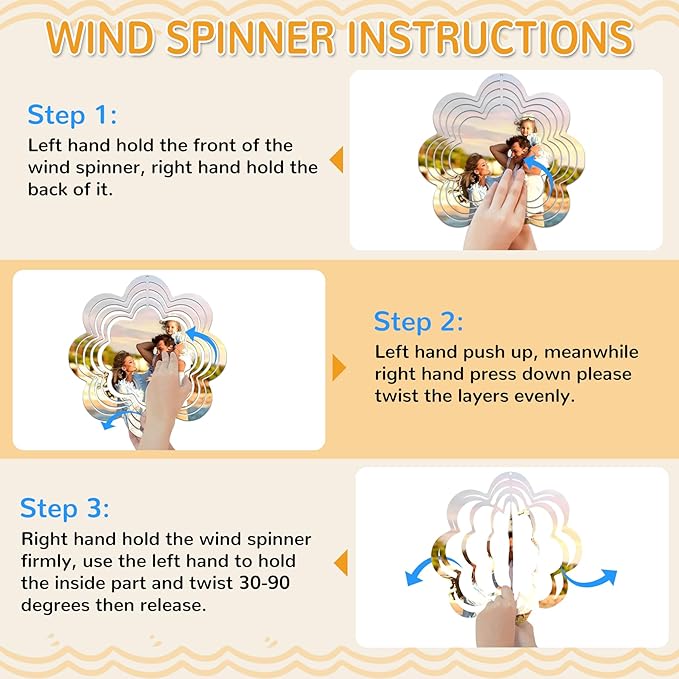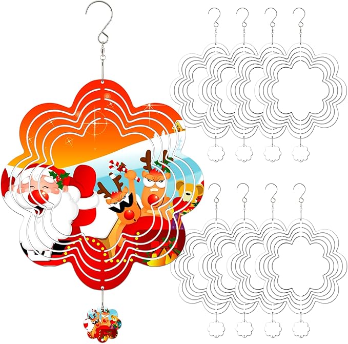 • EASY TO SUBLIMATE AND BEND — The windspinners yard decor is a flat and blank shape when you receive it. Just sublimate it at 365℉(185℃) for about 90-120s to make a gorgeous 3D sublimation wind spinner. Its special structure makes it easy to form vivid 3D sculpture shapes by hand. Then hang it up and it will drift freely in the breeze to form a captivating and magical 3D vision. When sunlight shines on the wind spinner, the high-gloss surface reflects a stunning light effect.