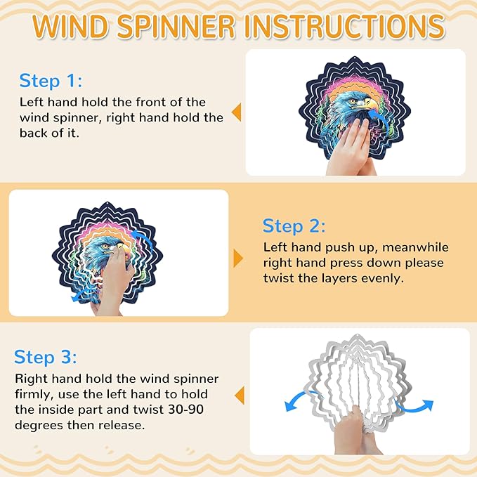 • WIDE APPLICATION — The spiral wind spinners for outside is suitable for gardens, windows, porches, front doors, backyard, trees, walls, patios, lawn and other indoor or outdoor spaces you prefer. It rotates in the wind, creating a magical 3D visual effect. This versatility makes it an ideal gift choice for weddings, Father's Day, Mother's Day, Valentine's Day, Christmas,Holiday, Halloween, Thanksgiving, anniversaries, and housewarming. A ncie DIY gift for our family, friend, mother, father.