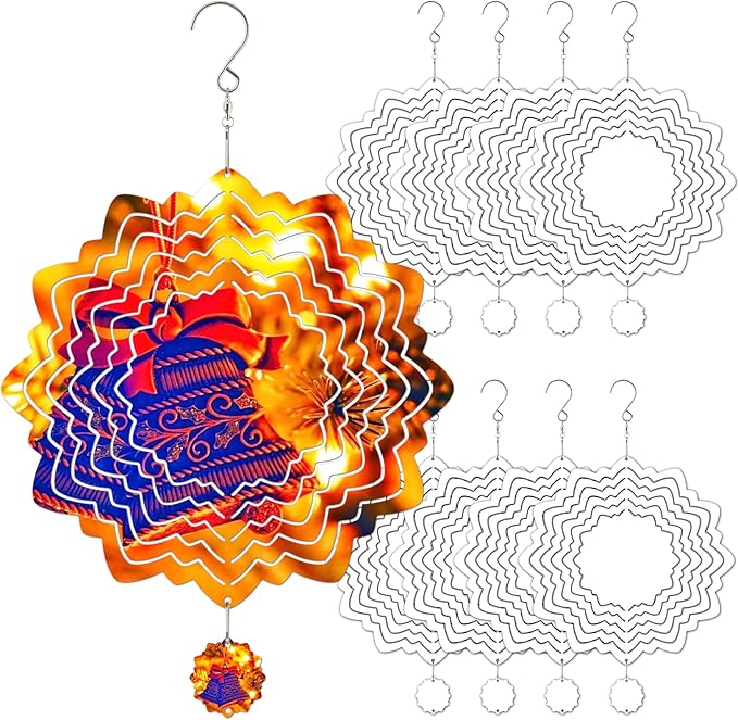 • BRIGHT AND VIVID COLOR: The double-sided of our wind spinner sublimation blanks ornaments is treated with high-quality sublimation coating, ensuring the vivid and crisp sublimation results for every project. Could be a nice Halloween decorations. Allowing you to incorporate your favorite designs or photos, unleashing your imagination to create a stunning personalized product. This windspinner sublimation blanks is suitable for heat transfer.