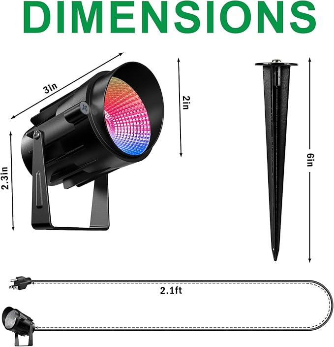 • Memory function: Outdoor LED landscape lights with memory function, remain the color and mode you set last time. Great for daily white lighting too. The garden light 270 degree adjustable, The correct tilt angle can give your house and yard a very high-end feel. The 3 lamp holder holes also provide more installation methods.