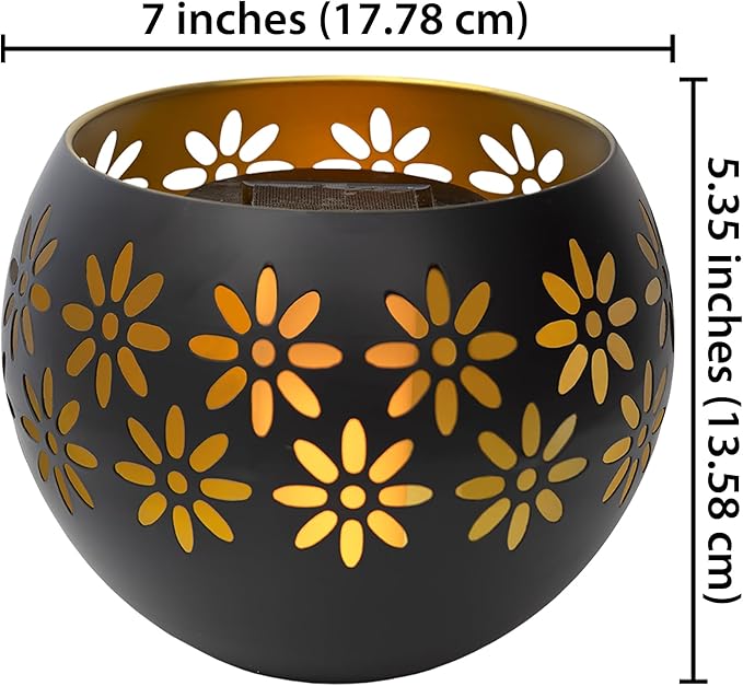 • 5.4” Metal Decorative Bowl - The Solar Fire Bowl features a stylish metal design, adding a touch of sophistication to your outdoor garden decor while serving as a functional solar table lamp, lantern and garden decor.