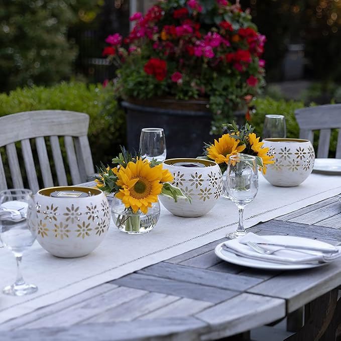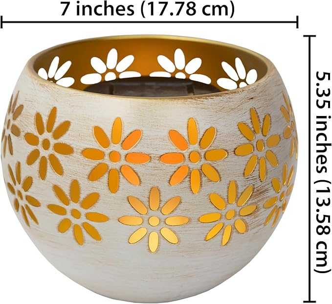 • 5.4” Metal Decorative Bowl - The Solar Fire Bowl features a stylish metal design, adding a touch of sophistication to your outdoor garden decor while serving as a functional solar table lamp, lantern and garden decor.
