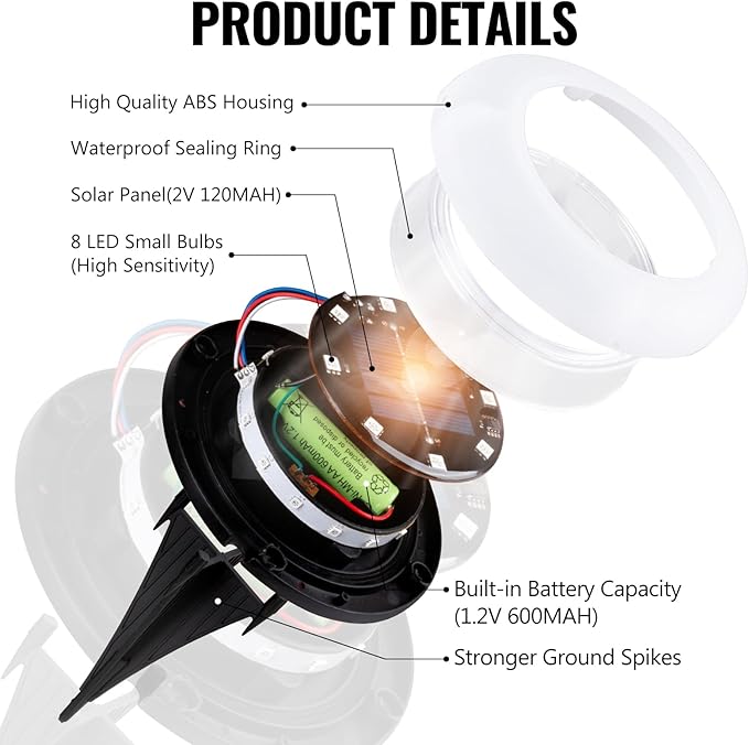 • EFFICIENT SOLAR GARDEN LIGHTS - Each solar lights has 16 LEDs. Illuminate your outdoor spaces with our outdoor circular ground lights. Designed to charge during the day and automatically illuminate at night, these lights provide efficient and eco-friendly lighting for your pathway, garden, patio, yard, walkway, deck, driveway, lawn, and more.
