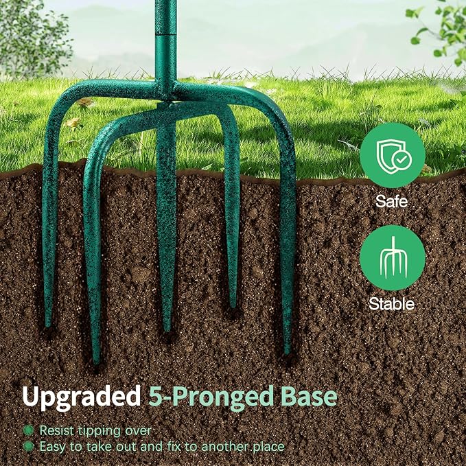 • 【New Upgraded 5-Pronged Base】Upgraded 5-forked base that resists tipping, adds more stability for this birdbath, make sure this birdbath stay in the soil of your garden upright and firmly. Heavy duty metal stake with black powder coat finish offers strong support for this bird bath, so that it is hard to bend, break or fracture.