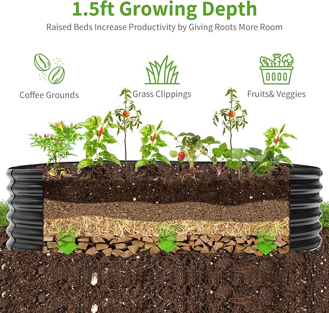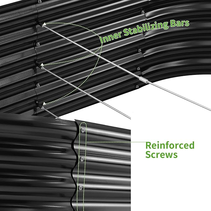 • Extra large capacity: The total dimensions of the raised garden bed are 96 "L x 48 "W x 18 "H and holds 359 gallons of soil. The extra large capacity provides plenty of growing space for planting vegetables, fruits, flowers and other plants.