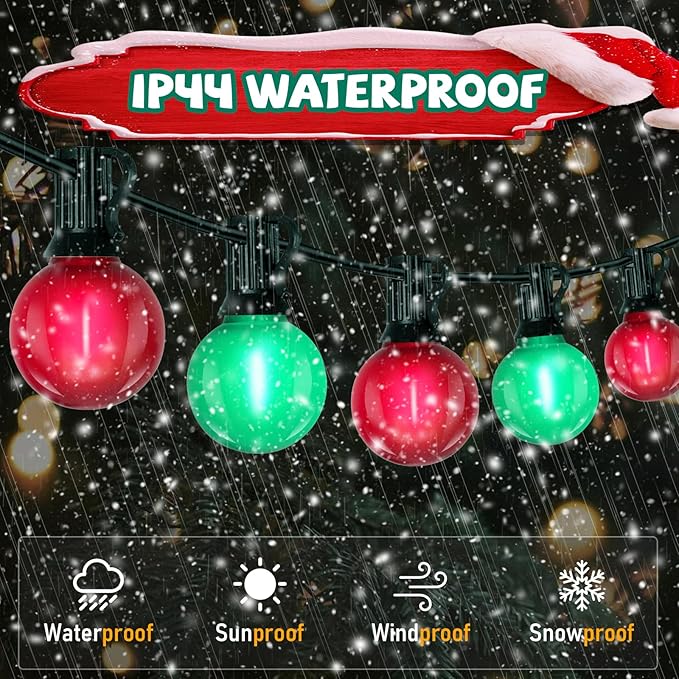 • Weather-Resistant LED Outdoor Lights: Outdoor Christmas lights for patio designed for both indoor and outdoor use, G40 LED frosted red and green christmas lights are weather-resistant and can withstand various weather conditions, ensuring your holiday decorations remain stunning. Hang frosted red and green string lights outdoor on your porch, wrap them around trees, or use them indoors to create a cozy holiday atmosphere.