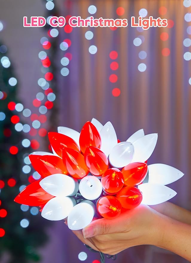 • 【 Connectable Up to 33 Sets 】- You can connect up to 33 sets of these C9 LED Christmas string lights end to end, providing convenience for decorating large areas or substantial outdoor objects such as rooflines or oversized trees