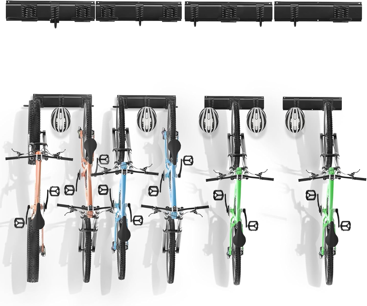 • 300 lbs/136 kg Strong Support: Engineered for durability, our steel garage bike rack's hooks each hold up to 50 lbs/22.68 kg, with a total capacity of 300 lbs/136 kg. Ideal for securely storing your bikes.