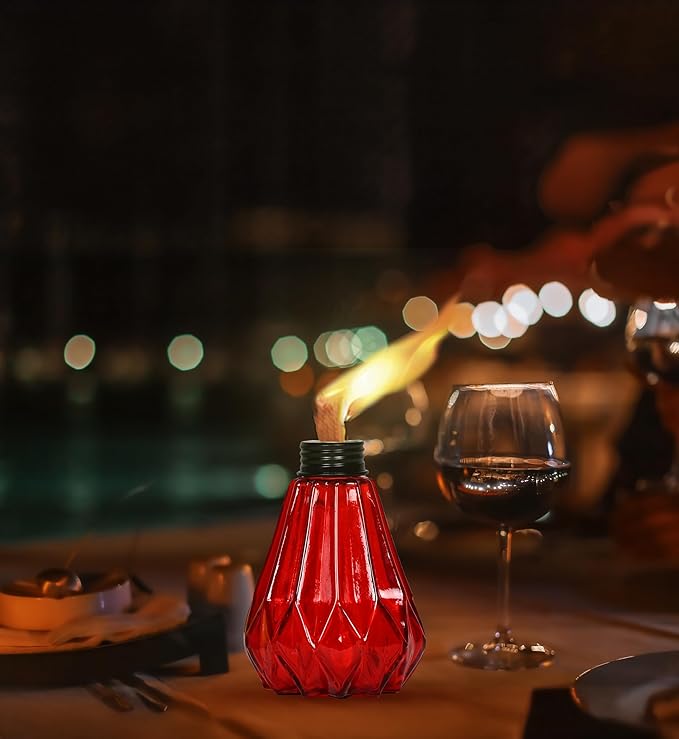 • AVAILABLE IN ASSORTED COLOURS: The offered table torches have a unique design and come in four vibrant colours: red, green and blue. Use the different colours to match different moods or use in combination to decorate your secluded and beautiful patio. A perfect lighting accessory for your casual or party mood.