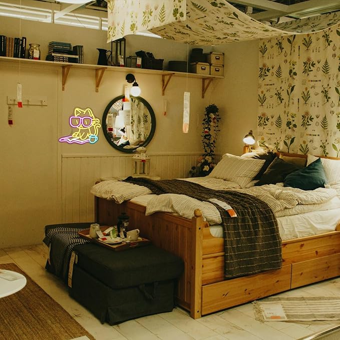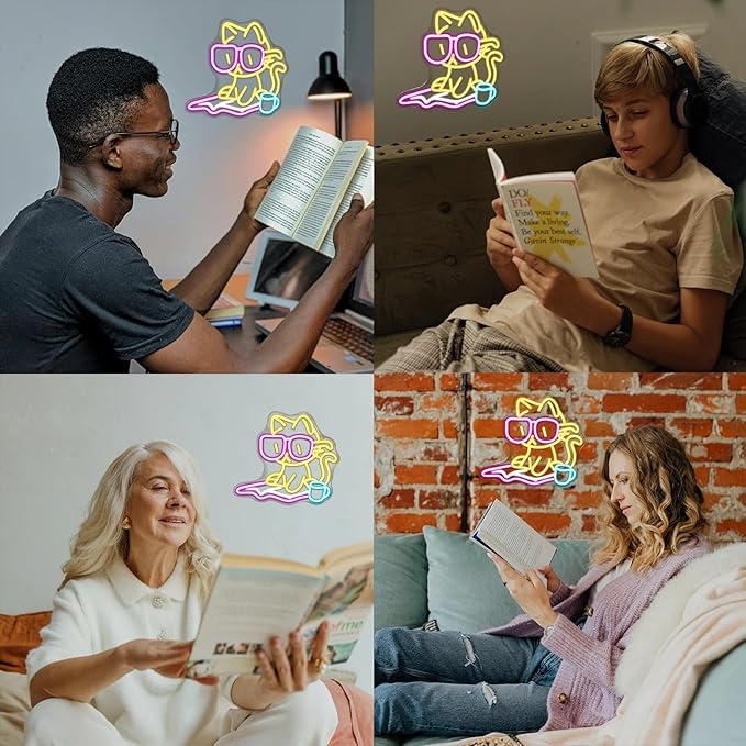 • Ignite the joy in your life: Illuminate your life with this Reading Cat neon light, showcasing your passion for life and creating a unique atmosphere! Perfect for decorating man caves, bars, or bedrooms.