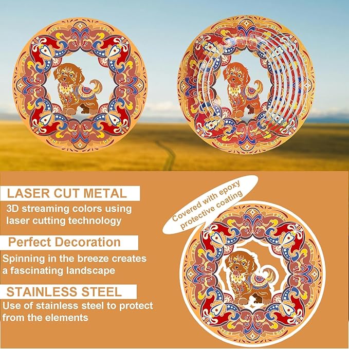 • 【Kinetic Art 3D Visual Sense】The colorful dog wind spinner can be multi-layer flip, the unique flow of light surface design, in the breeze under the 360 deg rotation, especially in the sunshine, this bright and charming landscape, is so natural elegance and brilliant colors
