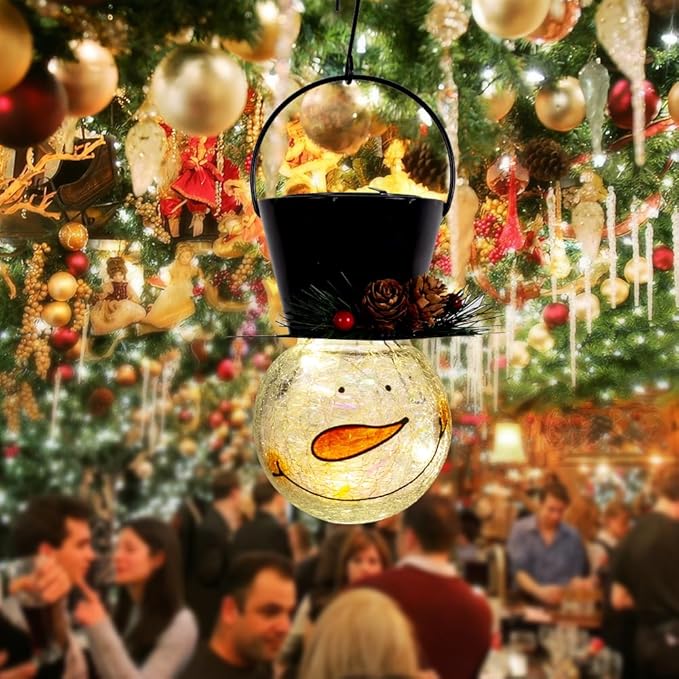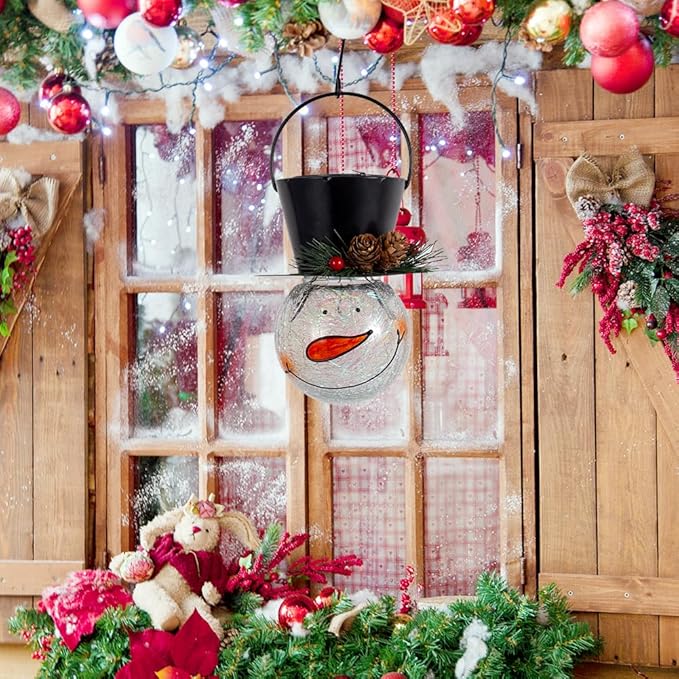 • 【All Weather Resistance】IP65 waterproof, the snowman solar christmas lantern outdoor can work normally in most weather such as rain, wind, snow, and even the worst weather conditions. This solar hanging christmas decorations are very suitable for decorating dining room, yard, fireplaces, kitchens, outdoor patio, lawn, garden, Christmas, party, or window sills decoration Lighting.