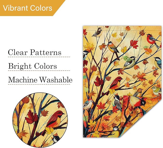 • For Fall Home Garden Decorations: This welcome fall harvest themed garden flag is decorated with birds and maple tree pattern. Embrace the beauty of autumn with our stunning garden flag featuring a vibrant and eye-catching fall design. It's the perfect way to add a touch of seasonal charm to your outdoor space