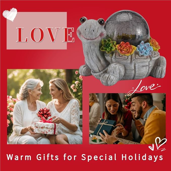 • 【The Best Choice For Gift Giving】The solar garden turtle has a cute and friendly expression, looking like welcoming your guests or enjoying the beautiful scenery, adding a warm and comfortable atmosphere to your home and garden,Make it a unique gardening gift, yard gift, and Housewarming gift. The Perfect Gift for Mothers, Women, Grandmothers, Birthdays, Thanksgiving Day and Christmas Day.