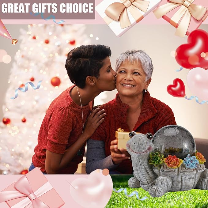 • 【Cute Garden Decoration】The turtle garden statue lamp is made of high-quality resin and uses hand drawn craftsmanship, so there is no need to worry about fading, windproof, rainproof, and antifreeze issues. The cracked glass ball emits soft light, and the lifelike succulent plants on the turtle's back are lovely decorations for your garden, lawn, yard, and balcony, making your home more vibrant.