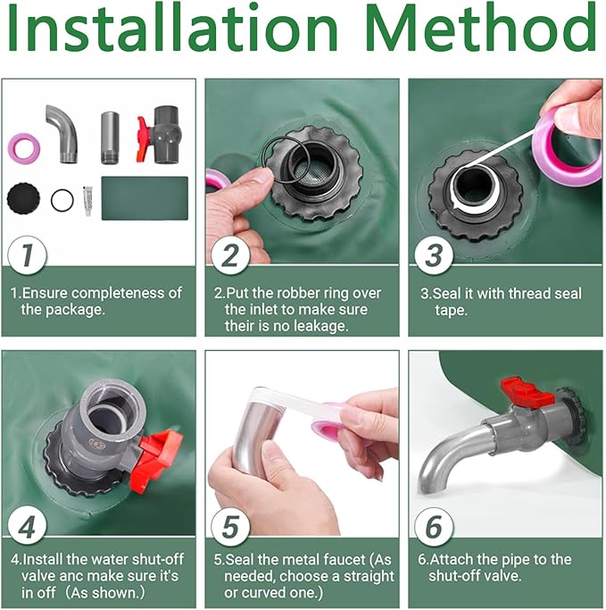 • 💦 【Convenient and Practical】Large capacity water storage vessel capacity :29Gal/110L, the overall size of 31.5*16.9*13.4 inches. Designed with a tap, when you need water, just open the outlet valve. As a non-potable water storage and rainwater recovery collector, it is very suitable for places without fixed water storage facilities, such as wilderness camping, outdoor, garden, campground, agriculture, emergency water supply, drought resistance, fire prevention, etc