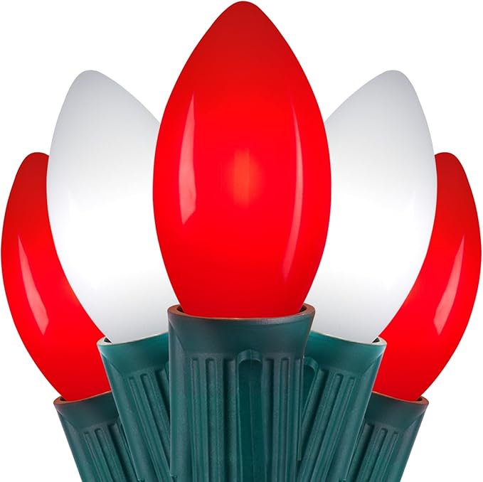 • Old Fashioned Appearance: This traditional red and white C9 LED plastic bulb of Christmas lights is made of inner abrasive finish, creating a misty and retro lighting effect, harmonious and comfortable atmosphere, lighting up your life and creating exclusive memories for you