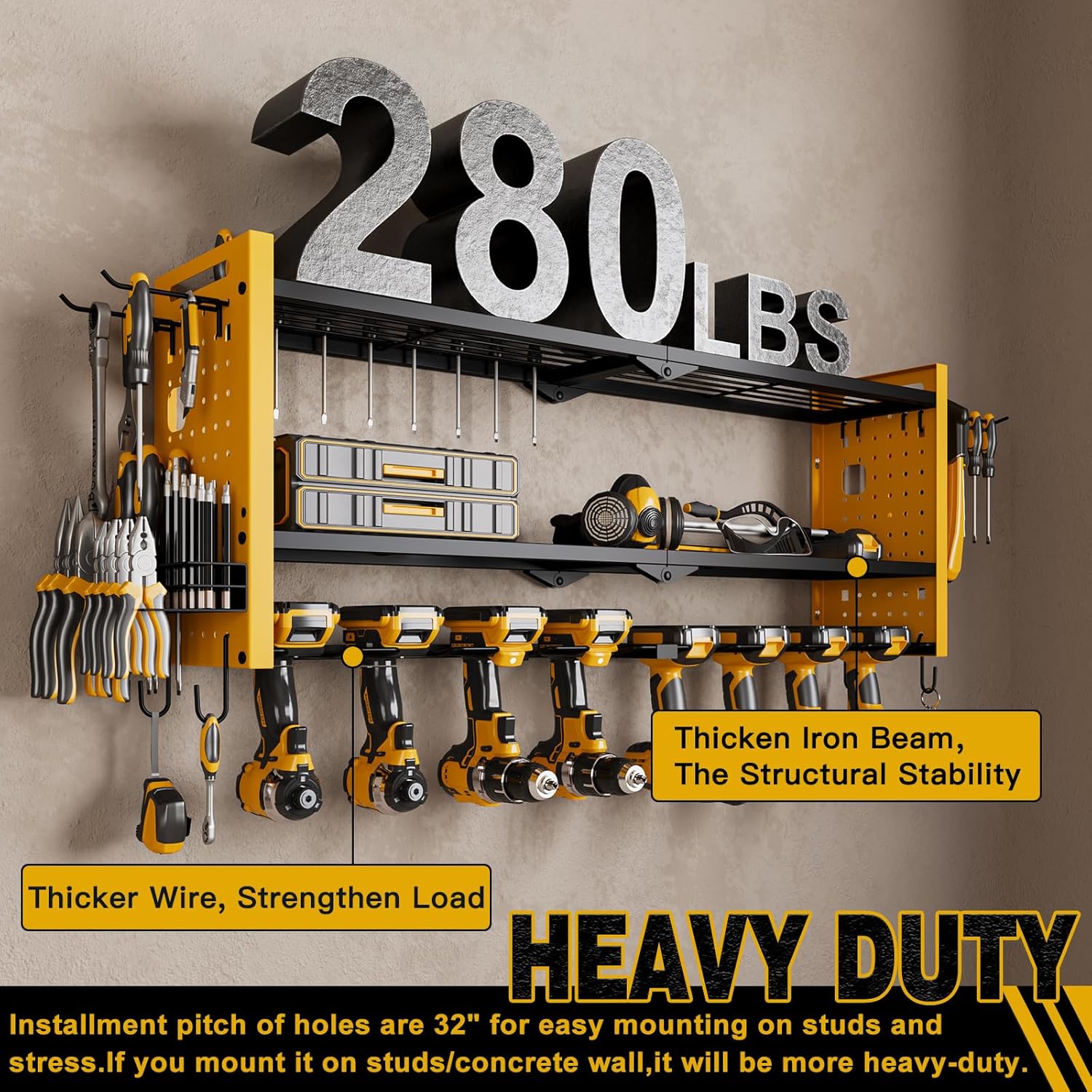 • Large Capacity:With 7.5 inches of spacing between the shelves, our wall-mounted tool organizer offers ample storage space that not only makes it easier to access your tools but also accommodates a wider variety of tool types