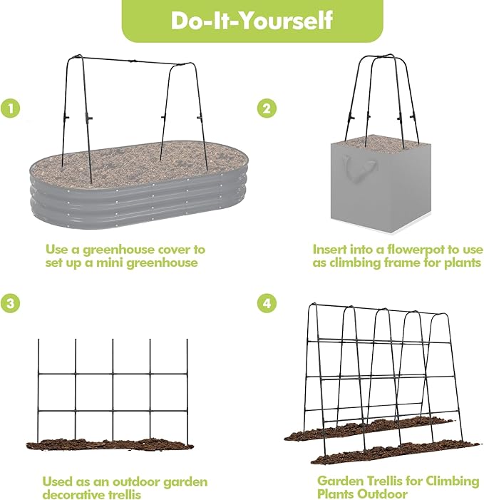 • Versatile Configuration: 5.25ft x 5.25ft length and height can be freely adjusted, making this more than just a vegetable trellis; It can be DIYed into a small greenhouse or a rose trellis, allowing you to customize it to your needs