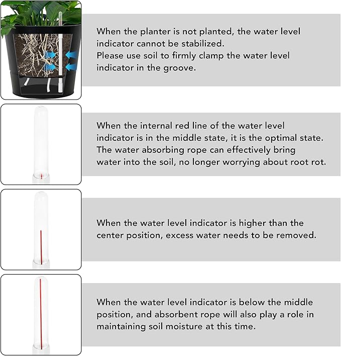 • WATER LEVEL INDICATOR: No need to guess when to water your plants - the built-in indicator shows the water level at a glance. Monitor your plants' water needs with the convenient water level indicator, ensuring they stay properly hydrated