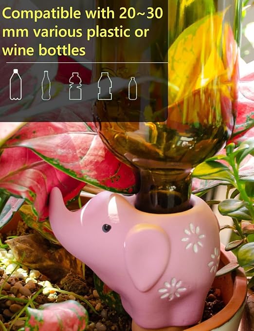 • 🐘Easy to Use: Simply soak the terracotta in water, insert self-watering spikes into the soil, and fill it up. The wide opening makes refilling easy, and the automatic plant waterer gradually releases water into the soil, keeping your plants perfectly moist without overwatering.