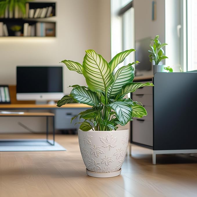 • Stylish Appearance: Our ceramic planter pot has a white main colour, a beautiful embossed maple leaves pattern on the surface, elegant appearance making it ideal for home decor, garden decor and office decor