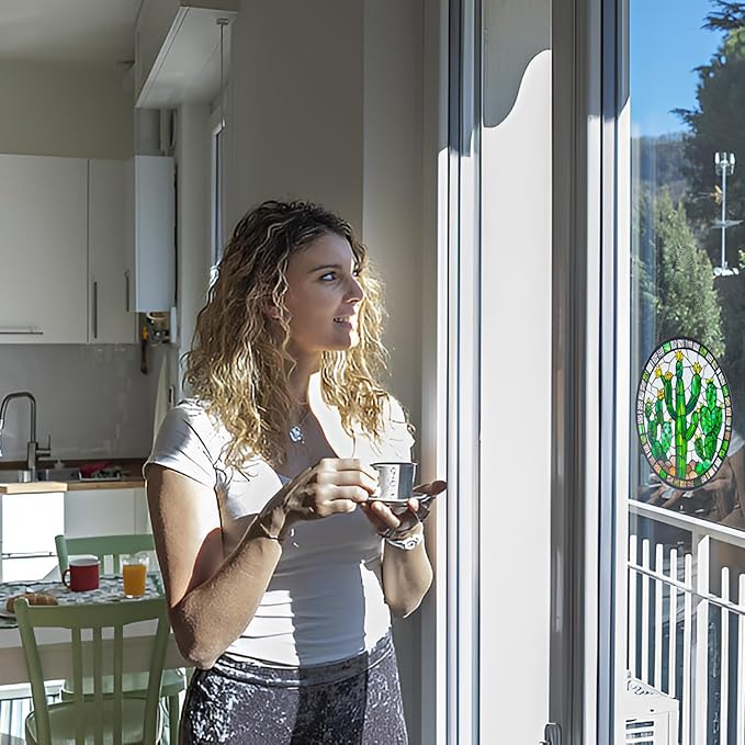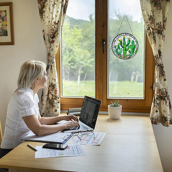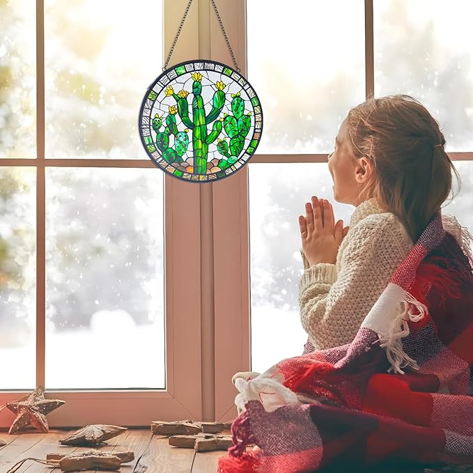 • 【stained Glass Window Hanging】This is a very beautiful cactus decor suncatcher with a size of 6x6 inches which is perfect for windows, adding a touch of color without obstructing the view outside. This piece of glass was cut individually and painted by hand. It is skillfully handmade, and it is real glass, NOT plastic or acrylic.