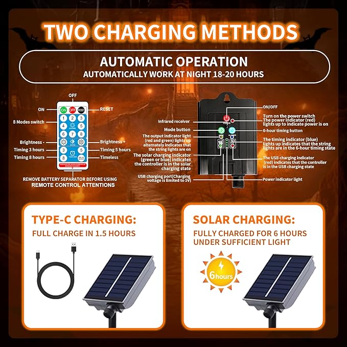 • Easy to Install & Auto ON/OFF: These outdoor solar lights are easy to install, no screws are needed, simply connect the stake and install them into the ground and turn the switch ON. They will auto turn on at night and turn off to be charged during the day. It only needs 4~6 hours to be fully charged and can last for 10~12 hours working time. Boldly decorate your garden with solar lights, and enjoy the spooky glow created by these Christmas lights with your families and friends on Christmas.