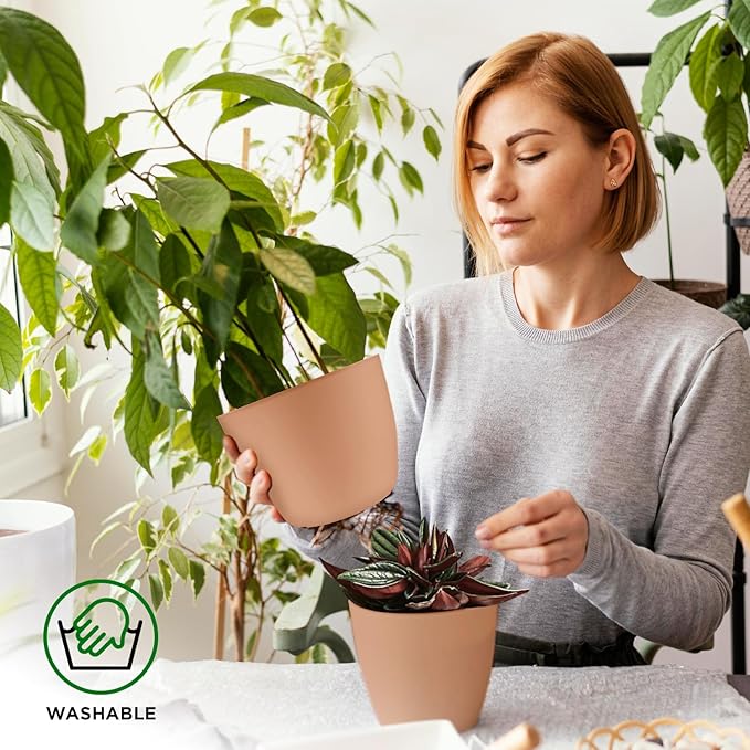 • MOST VALUABLE AND FUNCTIONAL: This set includes 5 different sizes of plastic planters (7”, 6.6”, 6”, 5.3”, 4.8” inches), making it perfect for growing a variety of plants both indoors and outdoors. Whether you're cultivating orchids, snake plants, mint, herbs, cacti, or aloe, these planters provide the versatility you need for your gardening projects.