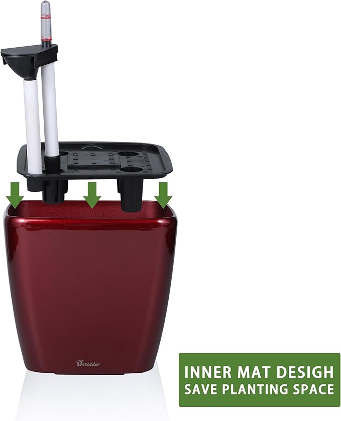 • SELF WATERING & NO MORE ROOT ROT - The smart unique sub-irrigation system is one of the most appealing aspects among all Dexceder planters. The easy-to-use separated integrated water reservoir or catcher- keeps your soil well aerated and automatic supplies plants with the right amount of ongoing moist air & nutrition for optimal growth. The insert indicator shows you the exact time to water again. The full water supply period can single-handedly last over 3 weeks based on different live plants
