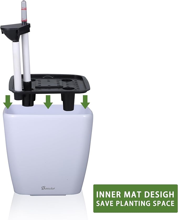 • SELF WATERING & NO MORE ROOT ROT - The smart unique sub-irrigation system is one of the most appealing aspects among all Dexceder planters. The easy-to-use separated integrated water reservoir or catcher- keeps your soil well aerated and automatic supplies plants with the right amount of ongoing moist air & nutrition for optimal growth. The insert indicator shows you the exact time to water again. The full water supply period can single-handedly last over 3 weeks based on different live plants