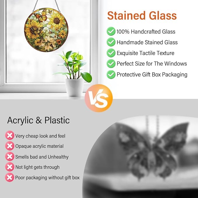 • 【Excellent Customaer Service】For safety during shipping, glass window hangings will be individually packaged and covered with soft foam. If you receive any quality problems, please contact us without hesitation, and the after-sales service will solve it for you as soon as possible. Please rest assured to buy.