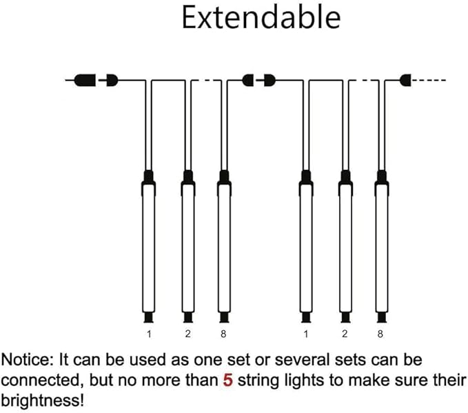 • 【Connectable Christmas Decorative Lights】Each string of our Christmas lights is like a shooting star in the night sky, slowly falling, creating a romantic and dreamy atmosphere, very beautiful. These icicle string lights can be used individually or connected (3-4 strings work best). If the whole 8 tubes do not light up when connecting more than one set, please check if the male and female connectors are connected correctly.